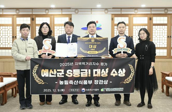 [무한뉴스=정민정 기자] 예산군은 농림축산식품부가 주최하고 한국농수산식품유통공사(aT)가 주관한 2025년 지역먹거리지수 평가에서 전년 대비 두 단계 상승한 최고 등급 S등급을 달성하고 대상을 수상하는 성과를 거뒀다고 밝혔다.