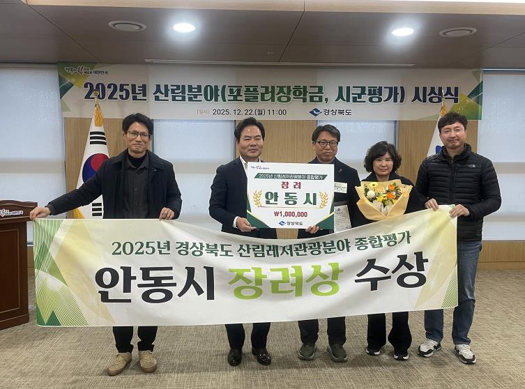 [무한뉴스=최진수 기자] 안동시는 경상북도 주관 12월 22일 ‘2025년 산림레저관광분야 종합평가’에서 장려상을 수상했다고 밝혔다.