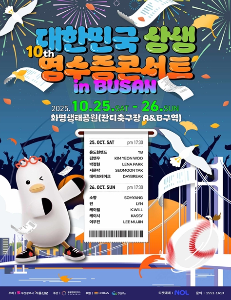 콘서트는 10월 25일부터 26일까지 화명생태공원에서 열리며, 부산 지역 소상공인 결제 영수증(10만 원 이상)을 공연 관람권(티켓)으로 인정하는 전국에서 유일한 상생형 문화 축제로, 단순한 공연 관람을 넘어 소비와 문화가 결합한 새로운 축제 모델을 선보인다.