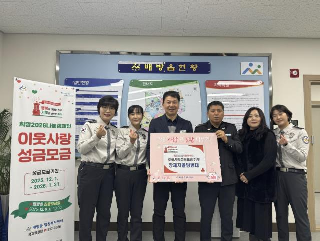 [무한뉴스=정민정 기자] 배방읍 장재자율방범대는 지난 15일 배방읍 행정복지센터에서 지역 내 어려운 이웃을 돕기 위한 ‘희망2026 나눔캠페인’에 동참해 성금 100만 원을 전달했다.