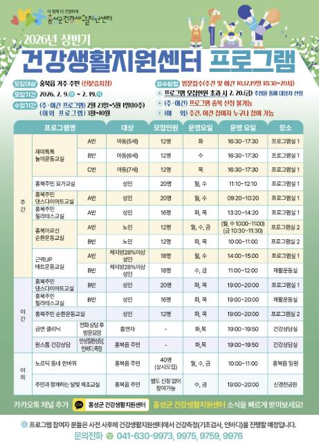 [무한뉴스=정민정 기자] 홍성군 건강생활지원센터는 홍북읍 주민의 체력 증진과 건강한 생활습관 형성을 위해 2026년 신체활동 프로그램을 총 3기로 운영할 예정이며, 내달 9일부터 19일까지 1기 참여자를 모집한다.