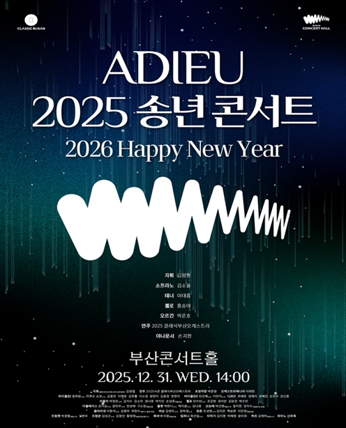 [무한뉴스=최진수 기자] 클래식부산은 2025년 부산콘서트홀의 성공적인 개관과 완성도 높은 첫해를 함께한 시민들에게 감사의 마음을 전하기 위해 오는 12월 31일 오후 2시 부산콘서트홀에서 '아듀(ADIEU) 2025 송년 콘서트'를 개최한다고 밝혔다.