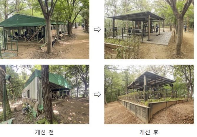 | ▲ 지양산 내 불법시설물 개선 전·후 |