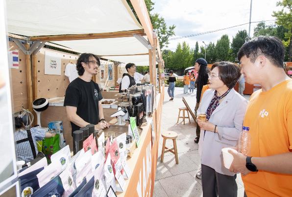 | ▲ 박희영 용산구청장이 이태원관광특구 활성화사업 '달달녹다' 행사에 참석해서 소상공인 및 주민들과 소통하고 있다. |