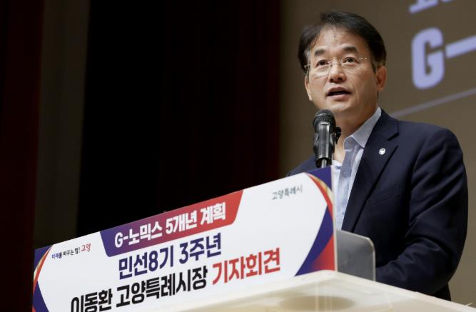 | ▲ 이동환 고양특례시장(AI·로봇·빅데이터 자급자족하는 계획‘AI 노믹스’를 담은 민선8기 3주년 기자회견) |