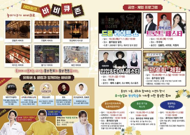 이용록 홍성군수는 “2025 홍성글로벌바비큐페스티벌은 단순한 먹거리 축제를 넘어 지역 문화와 경제를 아우르는 복합 축제”라며 “다채로운 연계 행사로 홍성의 매력을 널리 알리고, 군민과 관광객 모두가 함께 즐길 수 있는 축제로 만들겠다”고 말했다.