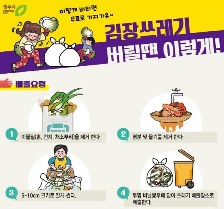 [무한뉴스=정민정 기자] 청주시는 김장철이 도래함에 따라 김장 쓰레기로 인한 시민 불편을 최소화하기 위해 오는 11월 1일부터 12월 20일까지 김장 쓰레기를 무상으로 수거한다고 31일 밝혔다.