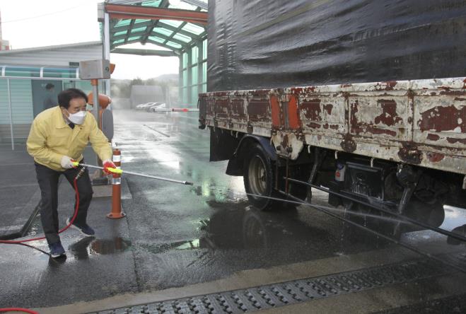| ▲ 송기섭 군수 방역 현장 방문 사진 |