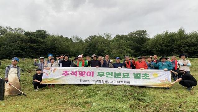 [무한뉴스=정민정 기자] 홍성군 장곡면은 추석명절을 맞이하여 지난 17일에 이장협의회, 남·여 새마을지도자회 및 행정복지센터 등 합동으로 장곡3.1공원 제초 작업과 공동묘지 내 무연분묘에 대해 벌초 작업을 실시했다.