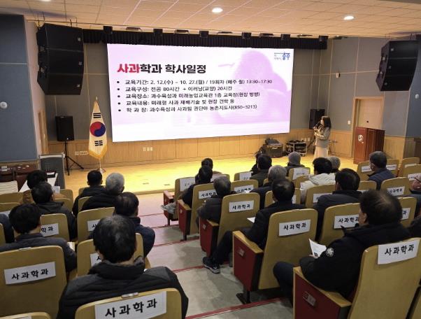 제14기 농업인대학은 △사과(평면수형) △복숭아 △친환경농업 등 3개 과정으로 운영되며, 과정별 20명 미만이면 폐강될 수 있다.