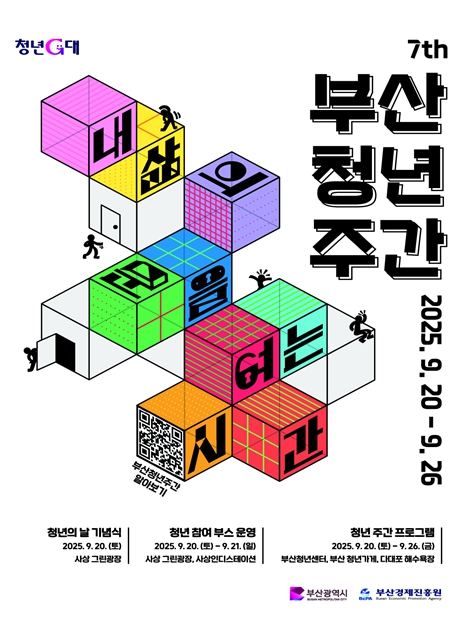 부산시는 9월 '청년의 날'을 맞아, 오는 20일부터 9월 26일까지 일주일 동안 '2025 부산청년주간'행사(이하 행사)를 개최한다고 밝혔다.