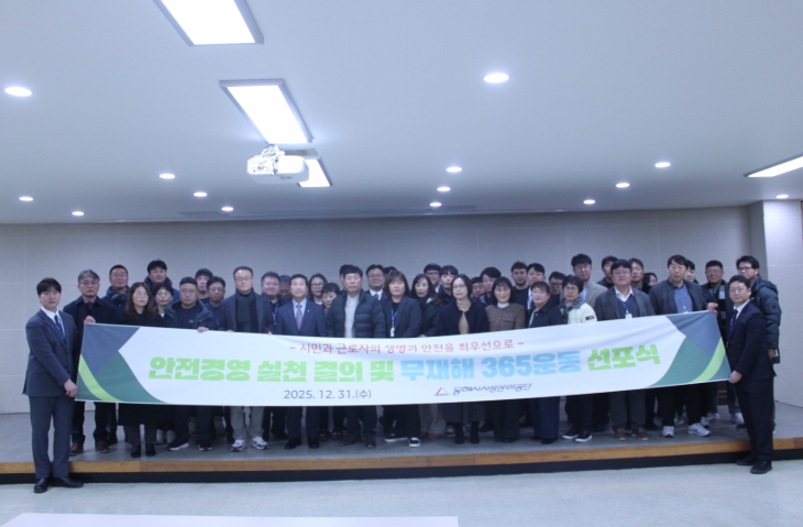 [무한뉴스=정민정 기자] 동해시시설관리공단은 지난 12월 31일 근로자복지회관 2층 대회의실에서 전 직원이 참여한 가운데 '안전경영 실천 결의 및 2026 무재해 365운동 선포식'을 개최했다.
