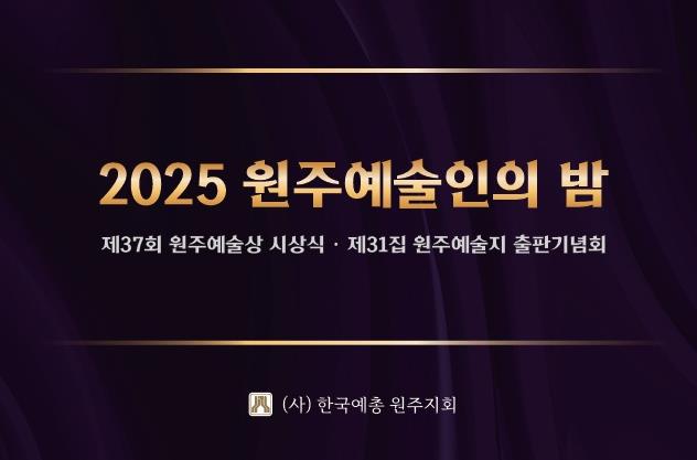 [무한뉴스=정민정 기자] 지역 문화예술 발전에 기여한 예술인들의 공로를 기리고, 원주의 예술적 성과를 공유하기 위한 ‘제37회 원주예술상 시상식 및 제31집 원주예술지 출판기념회’가 오는 16일 오후 5시, 빌라드아모르에서 개최된다.