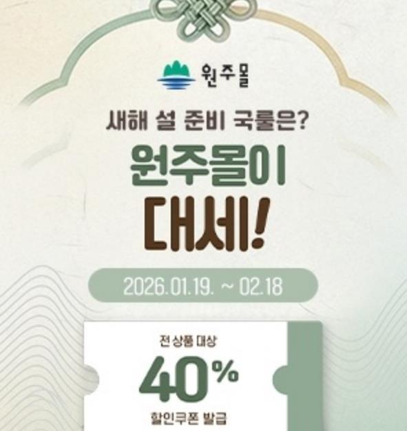 [무한뉴스=정민정 기자] 원주시 공식 인터넷 쇼핑몰 ‘원주몰’이 설 명절을 맞아 다음 달 18일까지 ‘2026 원주몰 설맞이 기획전’을 진행한다.