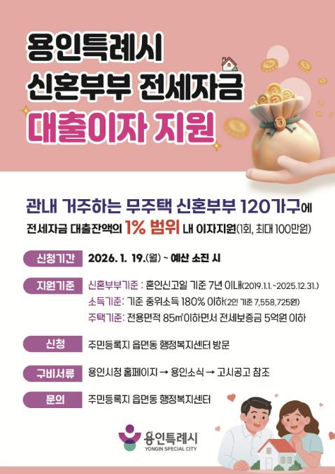 | ▲ 용인특례시가 2026년 신혼부부 전세자금 대출이자를 지원한다. |