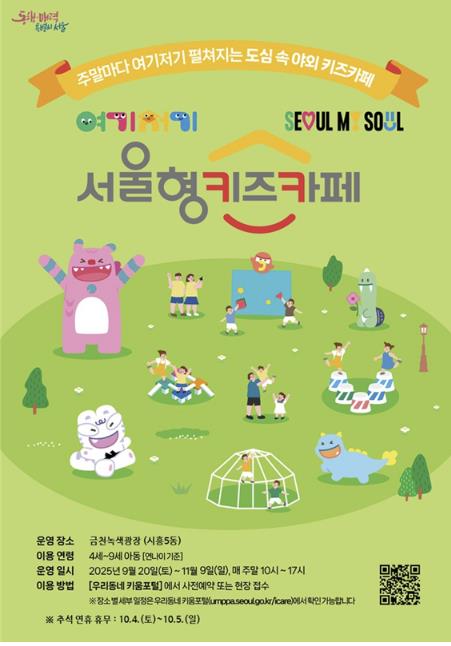 한편, 구는 ‘여기저기 서울형 키즈카페’ 외에도 10월 18일과 19일에 열리는 금천하모니축제와 연계한 팝업형 놀이터를 운영해 아이들에게 다양한 체험 기회를 제공할 예정이다.