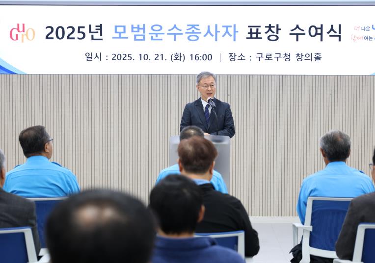 [무한뉴스=정승훈 기자] 구로구는 21일 구청 창의홀에서 2025년 모범운수종사자 표창을 수여했다.