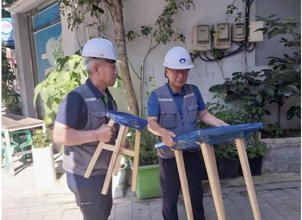 | ▲ 피해목으로 만들어진 가구를 도봉구 주민에게 배부하고 있다. |