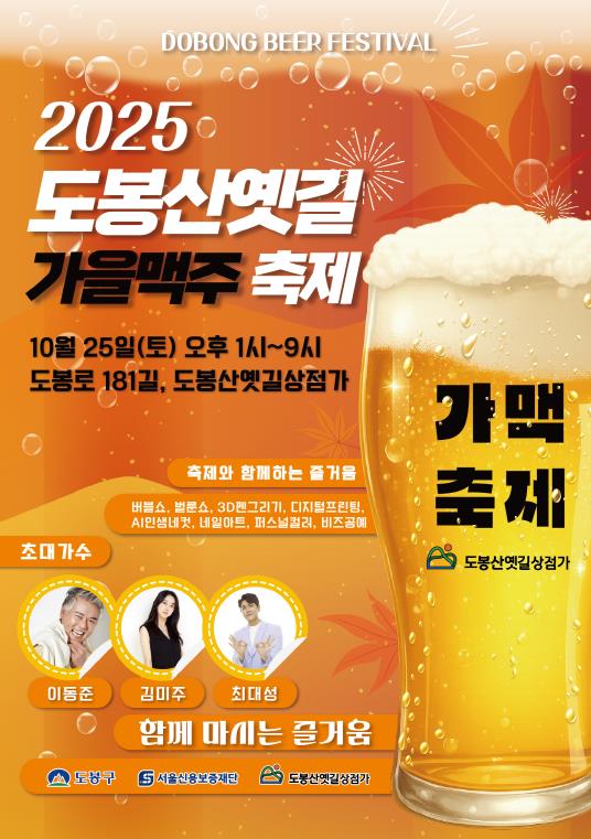 [무한뉴스=정승훈 기자] 서울 도봉구가 오는 10월 25일 도봉산옛길 상점가(도봉로 181길 일대)에서 '2025 도봉산옛길 가을맥주축제‘를 개최한다.