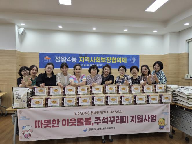신원철 정왕4동 지역사회보장협의체 민간위원장은 “어르신들이 따뜻한 명절을 보내시길 바라는 마음에서 준비했다”라며, “앞으로도 지역사회의 어려운 이웃을 돕기 위한 활동을 적극적으로 추진하겠다”라고 말했다.