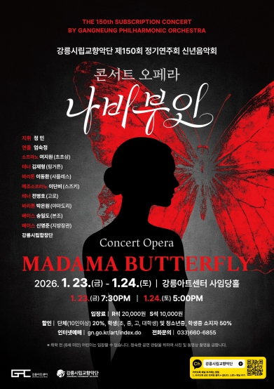 [무한뉴스=정민정 기자] 강릉시립교향악단은 2026년의 첫 정기연주회로 오는 23일(금) 19시 30분, 24일(토) 17시 강릉아트센터 사임당홀에서 콘서트 오페라‘나비부인’을 선보인다.