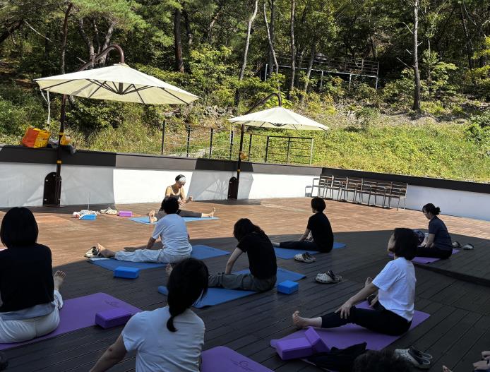 [무한뉴스=정민정 기자] 충북 단양군 단성면 소선암 치유의 숲에서 지난 27일 진행된 숲속 요가 프로그램이 성황리에 마무리됐다.