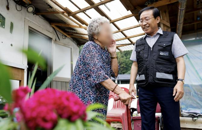 | ▲ 김문근 단양군수와 어르신 |