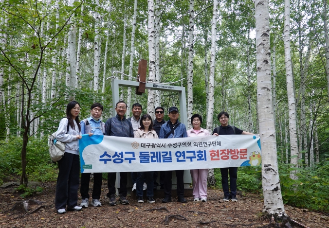 [무한뉴스=최진수 기자] 대구 수성구의회 의원연구단체인 ‘수성구 둘레길 연구회’는 지난 25일 경상북도 영양군 수비면 자작나무 숲길을 방문해 생태형 둘레길 개발과 지역경제 활성화 방안을 모색했다.