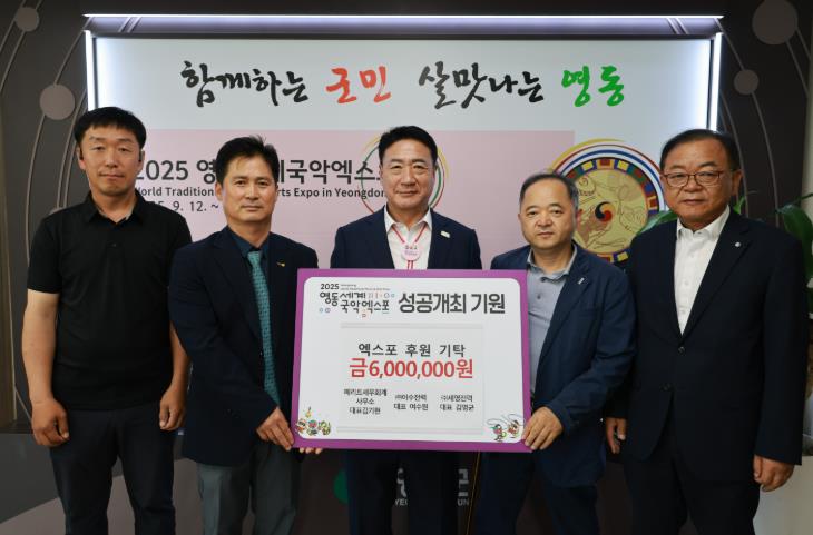 | ▲ 영동군 메리트세무회계사무소·㈜이수전력·㈜세영전력, 국악엑스포 후원금 기탁 |