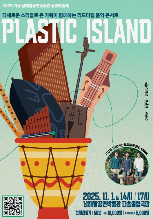 [무한뉴스=최진수 기자] 남해탈공연박물관(이동면 남해대로 2412)은 오는 11월 1일, 월드뮤직 콘서트 ‘플라스틱 아일랜드 Plastic Island’를 개최한다.