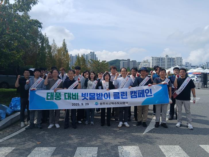 [무한뉴스=정민정 기자] 원주시상하수도사업소는 쾌적한 도시환경 조성과 건강한 수생태계 보전을 위해 지난 29일 소장을 비롯한 직원 60여 명과 함께 태풍 대비 ‘빗물받이 클린’ 캠페인을 전개하고, 환경부에 하수 중점관리지역 지정을 신청했다.