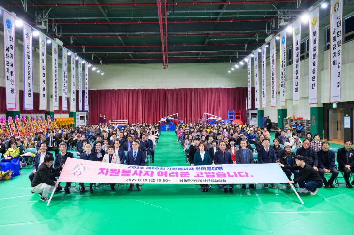 [무한뉴스=최진수 기자] 남해군은 지난 19일 국민체육센터에서 2층 다목적체육관에서 제20회 자원봉사자의 날을 기념해 ‘2025년 자원봉사자 한마음대회’를 성황리에 개최했다.