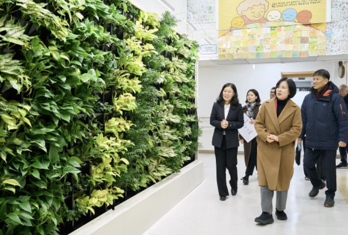 ‘일상의 숲’이라는 이름을 가지게 된 해당 실내정원은 휠체어 통행에 방해가 되지 않도록 바닥 대신 벽면을 활용한 ‘벽면 녹화’ 방식으로 정원을 조성했다. 이에 수중재활센터와 복지관 출입구 및 실내 카페의 벽면은 산호수, 스킨답서스 등 공기정화 효과가 탁월한 식물이 심어져 쾌적함이 한층 높아졌다.