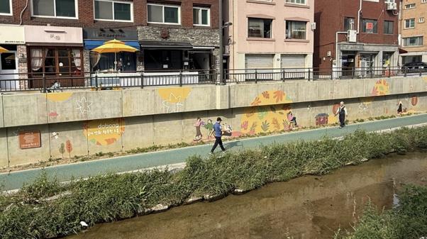 [무한뉴스=정승훈 기자] 방학천(금강아미움 맞은편~방학교) 옹벽 약 360m 구간이 걷고 싶고 머무르고 싶은 산책길로 탈바꿈했다.