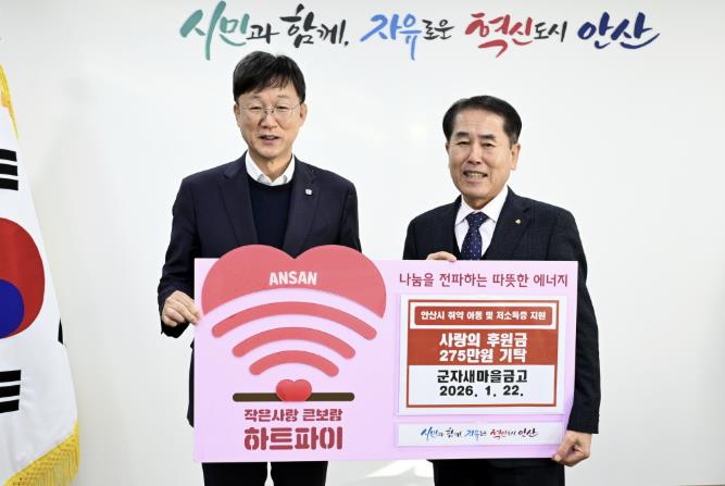 [무한뉴스=정승훈 기자] 안산시는 지난 22일 군자새마을금고로부터 사랑의 후원금 275만 원을 기탁받았다고 23일 밝혔다.