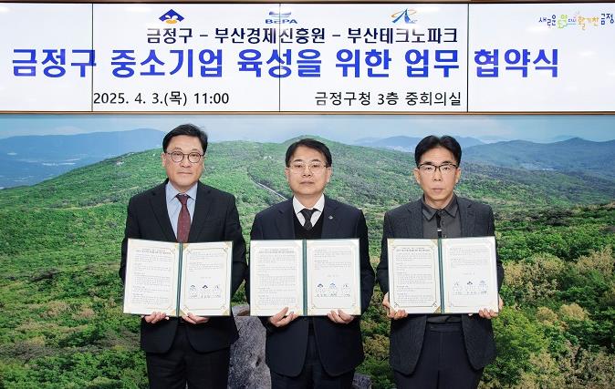 [무한뉴스=최진수 기자] 부산시 금정구는 지난 3일 (재)부산경제진흥원과 (재)부산테크노파크와 금정구 중소기업의 성장과 발전을 위하여 전문적이고 내실 있는 사업 추진을 위한 업무협약을 체결했다고 밝혔다.