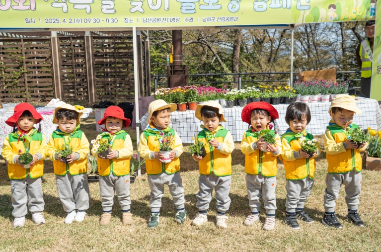 이번 행사에는 남해군 관내 7개 어린이집의 원아 190여 명이 참여했으며, 남산공원을 걸으며 쓰레기를 줍고 인증 스탬프를 찍은 후 직접 고른 꽃을 공원에 심었다.