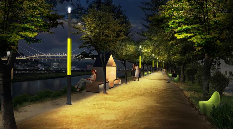 또 영대교에서부터 쌍벽루국민체육센터까지 둑마루길 800m구간에는 LED열주등 34개 경관조명 개선을 통해 기존산책로가 감성공간으로 탈바꿈하게 된다.