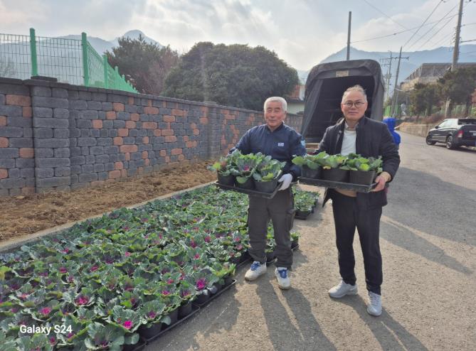 기증된 꽃양배추는 이동면 금석마을과 이동면 소재 우리 주유소 앞 도로변 화단에 식재됐다.
