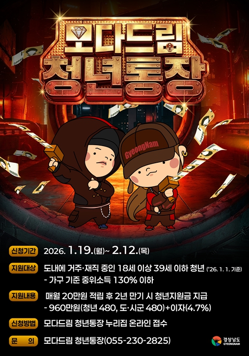[무한뉴스=최진수 기자] 김해시는 청년들의 자산 형성과 지역 정착을 돕는 '2026년 모다드림 청년통장 지원사업' 참여자를 모집한다고 20일 밝혔다.
