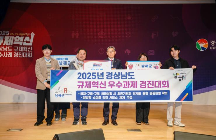 [무한뉴스=최진수 기자] 남해군이 19일 경남도청에서 진행된 ‘2025년 경상남도 규제혁신 우수과제 경진대회’에서 규제혁신 우수사례 분야에서 우수상을 수상하는 영예를 안았다.