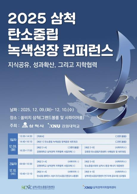 [무한뉴스=정민정 기자] 삼척시와 강원대학교가 공동 주최하는 ‘2025 삼척 탄소중립 녹색성장 컨퍼런스’가 오는 12월 9일부터 10일까지 이틀간 쏠비치 삼척에서 개최된다.