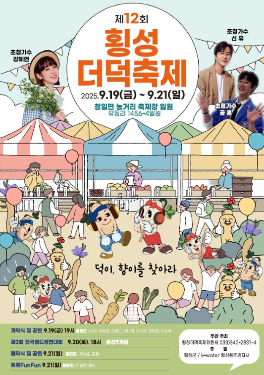 올해 축제는 “맛있는 더덕, 즐거운 축제, 신나는 청일”을 주제로, 횡성의 대표 특산물인 더덕을 중심으로 다채로운 먹거리와 즐길 거리를 선보인다.