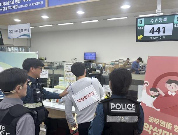 [무한뉴스=정민정 기자] 원주시는 지난 10월 23일 원주시청 1층 종합민원실에서 원주경찰서(단계지구대)와 시청 청원경찰, 민원담당관 직원 등 20여 명이 합동으로 특이(악성)민원 및 비상상황에 대비하여 현장대응 모의훈련을 진행했다.