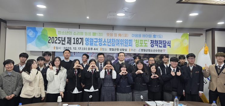 [무한뉴스=정민정 기자] 제18기 영월군청소년참여위원회는 지난 12월 17일 오후 4시 영월군청 상황실에서 '제18기 영월군청소년참여위원회 활동 보고 및 정책전달식'을 진행했다.