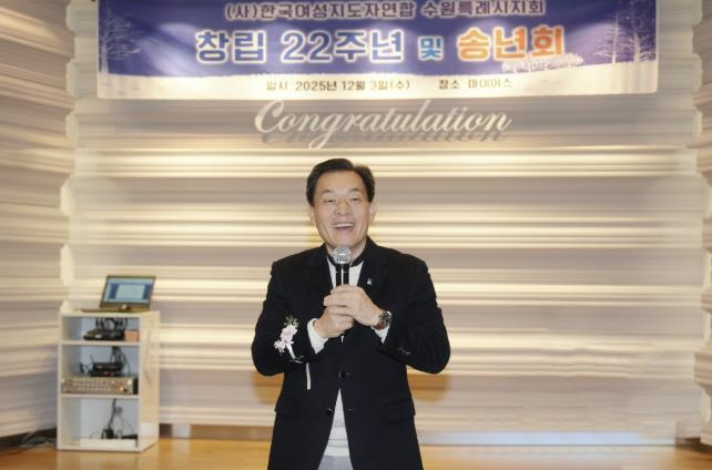 [무한뉴스=양현명 기자] 이재준 수원시장이 3일 권선구에서 열린 한국여성지도자연합 수원시지회 송년 행사에 참석해 “여성의 인권을 넘어 지역사회에 다양한 활동과 지원을 해주신 여러분께 감사드린다”고 말했다.