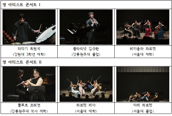 ‘영 아티스트 콘서트’는 강원도 내 음악대학 출신의 우수 인재와 대관령아카데미 시즌 교육프로그램인 ‘실내악 멘토십 프로그램’에 참여한 실력 있는 실내악 팀들이 무대에 올랐다.