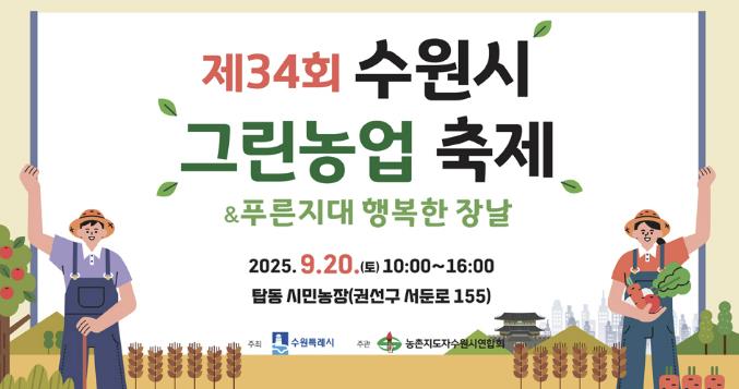 [무한뉴스=양현명 기자] 농업인과 시민이 함께하는 ‘제34회 수원시 그린농업축제’가 9월 20일 오전 10시부터 오후 4시까지 탑동시민농장에서 열린다.
