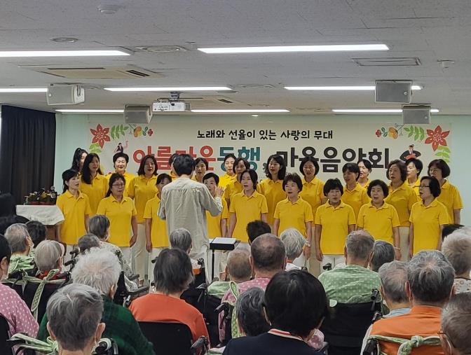 어르신들이 잘 아는 곡 중심으로 선곡된 이번 공연은 모두가 함께 따라 부르는 방식으로 이뤄졌다. 특히 ‘개똥벌레’ 시간에는 어르신들과 단원들이 함께 박수치며 율동을 진행하기도 했다.