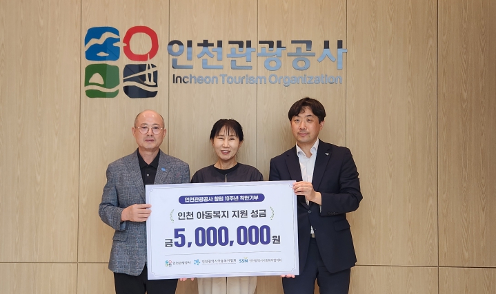 [무한뉴스=정승훈 기자] 인천관광공사가 창립 10주년을 맞아 인천지역 아동복지 지원 성금 500만원을 인천아동복지협회에 전달했다.